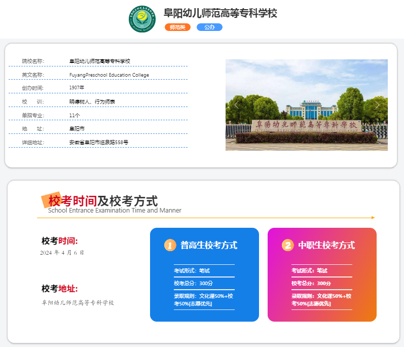 中文名:阜陽幼兒師范高等專科學校