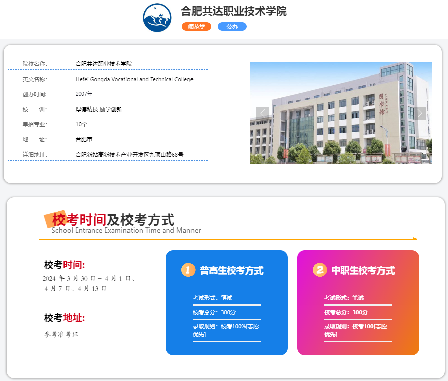 學院名稱:合肥共達職業技術學院