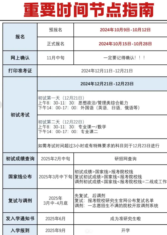 除了網上預報名和正式網上報名外,考研升學還有其他一些重要的時間節點需要考生關注: