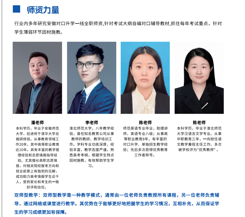 師資力量是衡量一個培訓機構教學質(zhì)量的重要指標。考生和家長在選擇機構時,應重點了解教師的資質(zhì)和教學經(jīng)驗。優(yōu)質(zhì)的單招培訓機構通常會聘請具有豐富教學經(jīng)驗、熟悉單招考試命題規(guī)律和考試動態(tài)的教師團隊。建議通過試聽課程、與教師交流等方式,親自感受教師的教學水平和專業(yè)素養(yǎng)。三、培訓環(huán)境:考察教學設施,營造學習氛圍