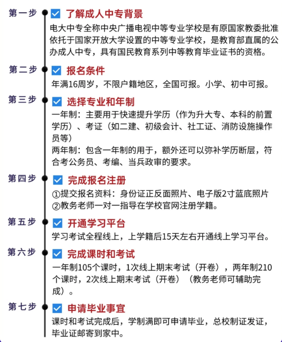 中央廣播電視中等專業學校是經原國家教委批準、現由教育部職業教育與成人教育司指導、國家開放大學直屬管理的公辦成人中等專業學校,在全國成人中職教育領域具有極高權威性。學校依托 “電中在線” 數字化平臺,實現課程學習、考試考核、學籍管理全流程線上化,考生無需到校集中學習,可靈活平衡工作與深造,完美適配武漢市在職人員(如光谷 IT 從業者、建筑施工員、電商運營)、待業人員、退伍軍人等群體的需求。