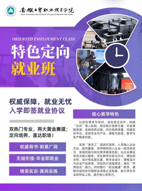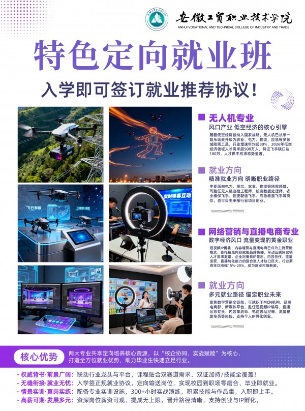 安徽工貿職業技術學院0+3特色專業訂單班,以公辦保障、校企共育、就業無憂為核心亮點,為中職學子搭建了低門檻、高價值的升學就業通道。建議有意向的學子及時聯系招生辦咨詢詳情,結合自身興趣與職業規劃選擇適配專業,抓住難得的發展機遇,開啟技能成才新征程。