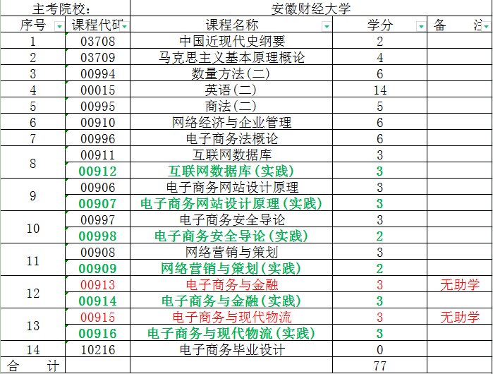 安徽財經大學成人自考專升本電子商務專業的考試科目一般包括兩門公共課和兩門專業課。具體科目可能因年份和招生政策有所調整,但通常包括: