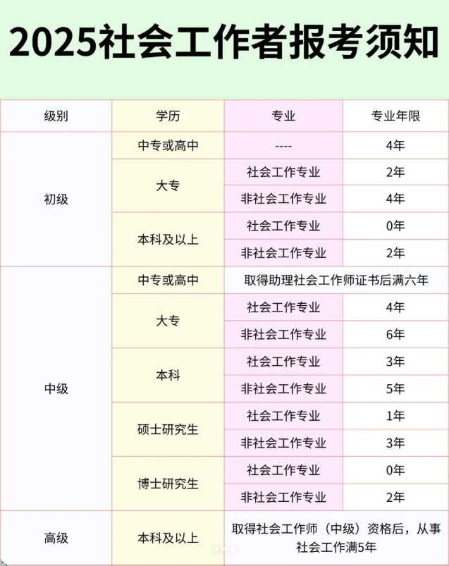 取得社會(huì)工作專(zhuān)業(yè)大專(zhuān)學(xué)歷,從事社會(huì)工作滿2年。