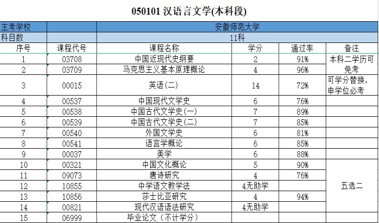 安徽師范大學(xué)小自考漢語言文學(xué)專業(yè)的考試科目主要包括公共課程、專業(yè)核心課程和選修課程。具體科目可能因年份和考試安排而有所調(diào)整,但一般包括: